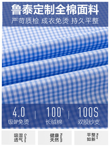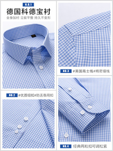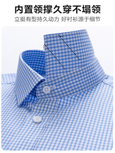蓝色格子休闲衬衫男士商务正装中青年细格子纯棉衬衣新款免烫抗皱