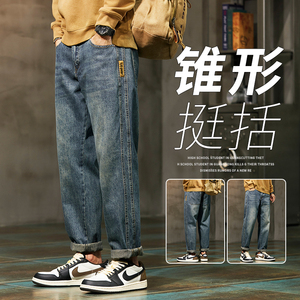 美式复古秋冬牛仔裤男士宽松直筒潮牌2025春秋新款水洗休闲长裤子