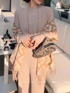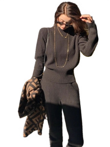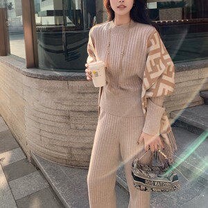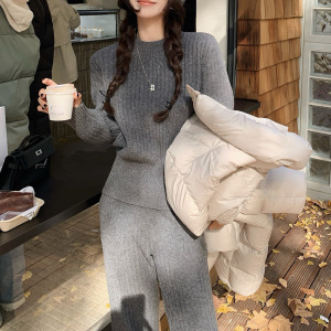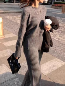 两件套坑条2025冬款慵懒风圆领针织衫套头毛衣+阔腿裤休闲套装女