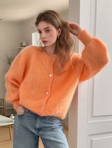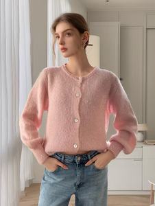 糖果色针织开衫女欧美2025秋冬马海毛纯色开衫马卡龙色毛衣开衫女