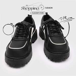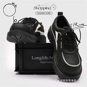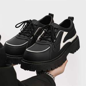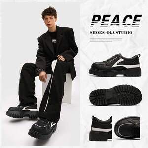 英伦春季商务正装潮复古男士黑色大头休闲内厚底德比防滑增高皮鞋