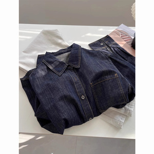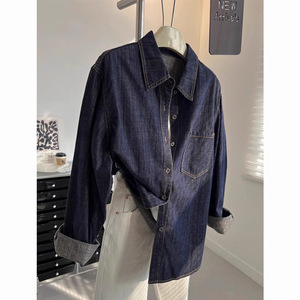 复古学院风翻领牛仔衬衫女春秋高级感休闲慵懒长袖气质衬衣薄外套