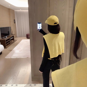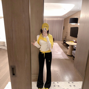 纯色V领刺绣修身打底衫上衣修身显瘦超火穿搭长袖T恤+黄色披肩