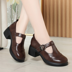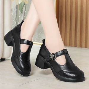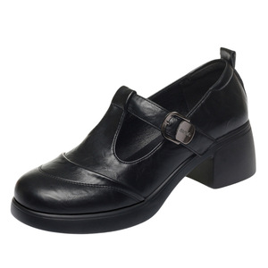 复古皮鞋女春秋玛丽珍女鞋高跟单鞋配裙子粗跟舒适丁字鞋一件代发
