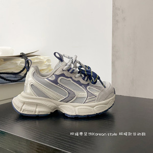 韩版潮流儿童经典双绳带拼接款老爹鞋2025年秋款男女童百搭跑步鞋