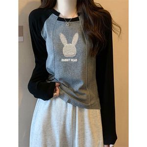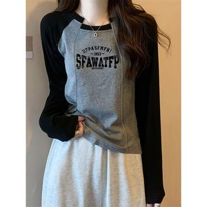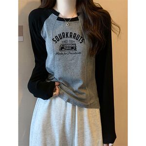 纯棉宽松拼接长袖t恤女打底衫内搭2025新款秋冬设计撞色上衣