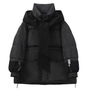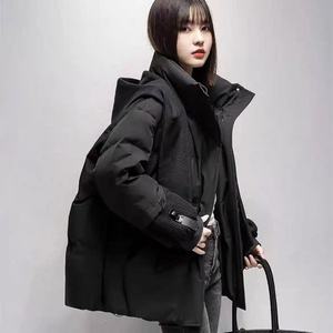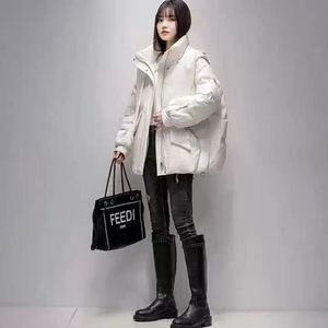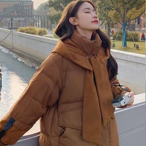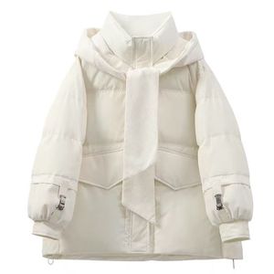 羽绒服女2025年新款冬季韩版针织帽可脱卸披肩围巾加厚白鸭绒外套