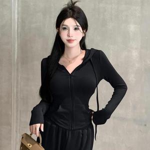 纯欲风春秋新款修身显瘦连帽开衫长袖上衣外套阔腿长裤时尚两件套
