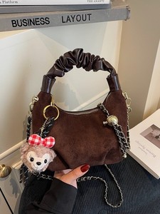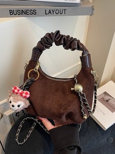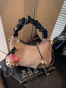 外贸小众褶皱饺子包女2025新款高级感时尚手提包单肩斜挎链条小包