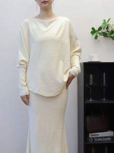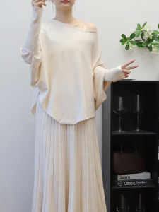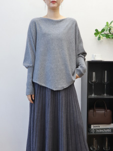 法式不规则蝙蝠袖套头毛衣女2025秋冬新款宽松慵懒风针织衫上衣潮