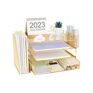 亚马逊办公室金属文件架桌面多层收纳架文件盘铁艺抽拉式置物架