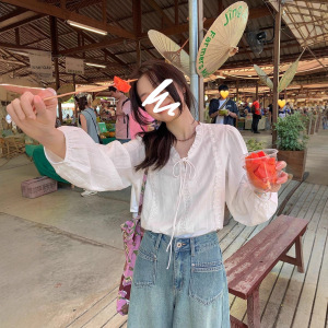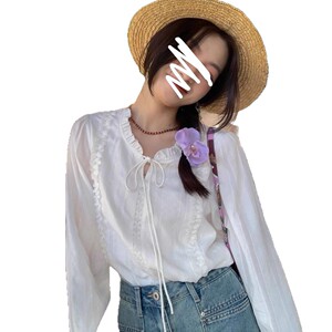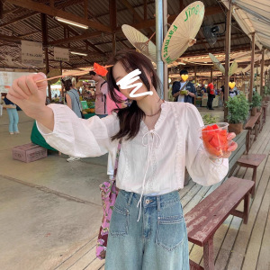法式系带2025年秋花边领白衬衫女小个子别致温柔风衬衣女