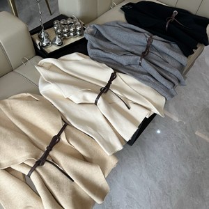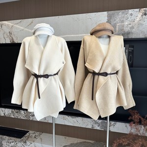 重磅大女主 wan美廓形送腰带针织衫翻领外套女毛衣