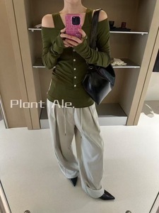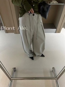 老钱风高端天丝棉麻抽绳时尚休闲直筒阔腿裤女拖地长裤