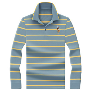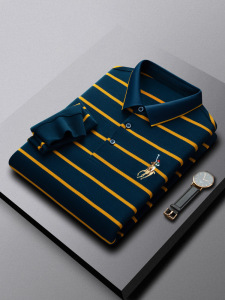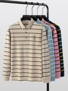 保罗风格春秋爸爸棉质色织条纹长袖男士polo衫中年商务休闲翻领衫