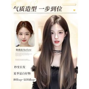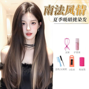 免发网假发女片头顶全头套增发量补发蓬松高颅顶挑染长直发假发片