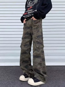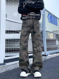 牛仔裤男士美式迷彩工装春秋夏季新款潮牌高街小众宽松休闲裤男装