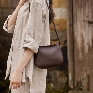 时尚斜挎小包2025新款质感单肩包植鞣牛皮水桶包女百搭洋气小方包