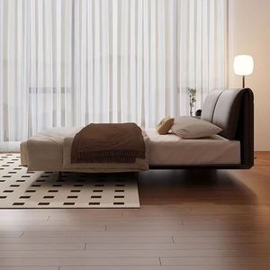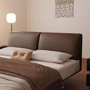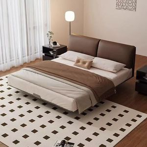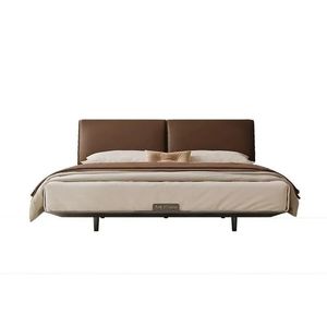 新款奶油大象碳素钢床架小户型主卧现代简约真皮齐边悬浮软包床头