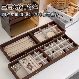 胡桃木三层18格首饰盒项链礼盒古风首饰饰品批发跨境木质首饰盒
