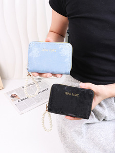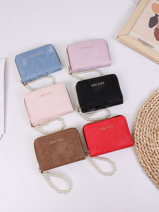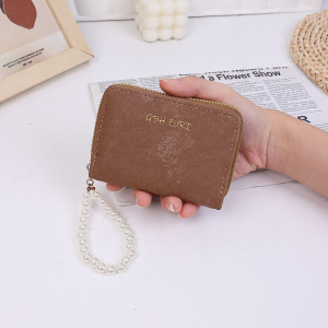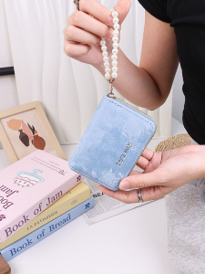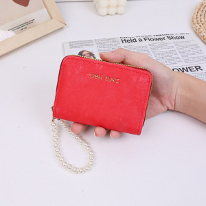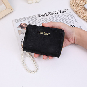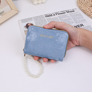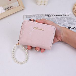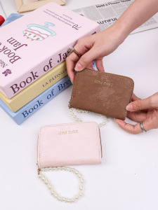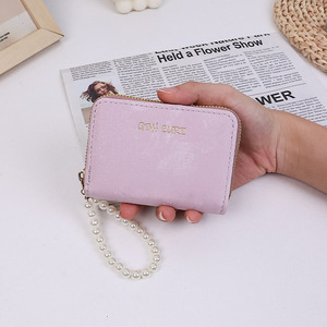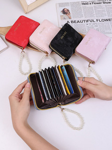 外贸新款女士卡包珍珠挂坠迷你风琴卡包便携简约女士证件收纳卡套