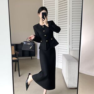 法式小香风气质时尚套装女秋季新款圆领长袖外套半身裙两件套百搭