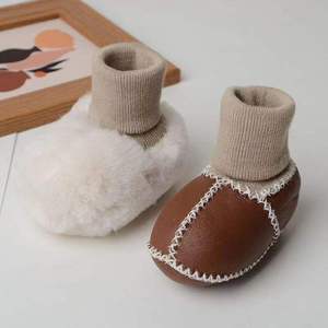 皮毛一体婴儿学步鞋秋冬袜鞋0-12个月男女宝宝四季软底不掉步鞋