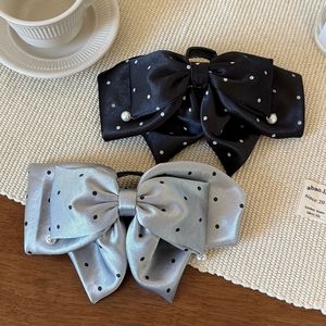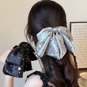 精致亮面蝴蝶结波点马尾夹韩系高级感发夹女后脑勺半扎发鲨鱼抓夹