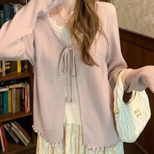 2025秋季外套温柔软糯修身显瘦上衣假两件宽松外搭慵懒休闲风开衫