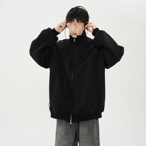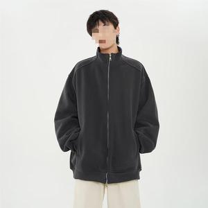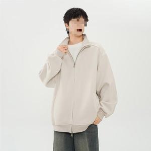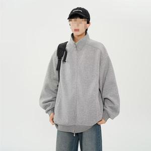 潮牌重磅立领开衫卫衣男春秋季美式夹克上衣纯色运动拉链休闲外套