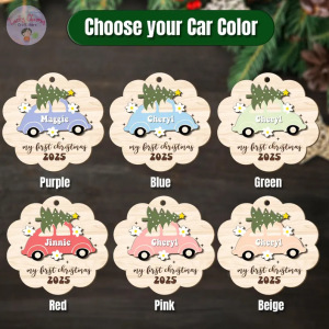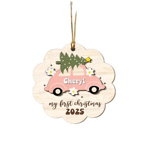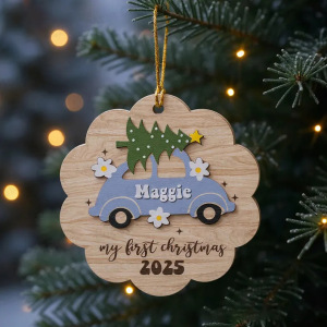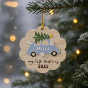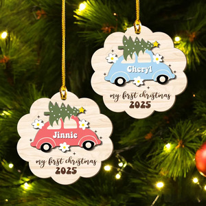 2025亚马逊木制木头木质新品小汽车圣诞树第一个圣诞节工艺品