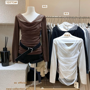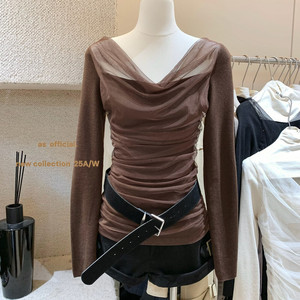 AS OFFICIAL博主推荐娇娇少女温润感柔软网纱拼接荡领小衫(配腰带