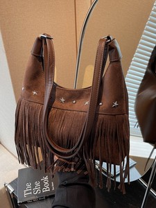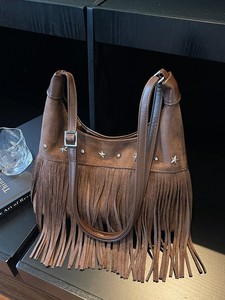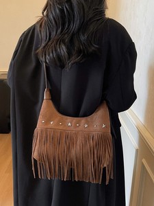 复古流苏大容量休闲包包女新款时尚鹿皮绒单肩斜挎包铆钉通勤大包