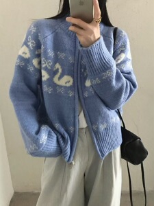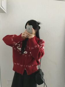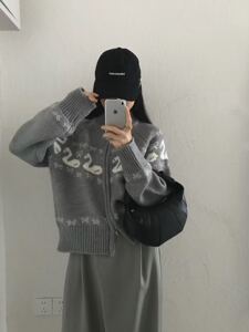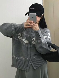 韩系费尔岛提花毛衣外套女秋冬新款宽松百搭拉链针织开衫上衣1326