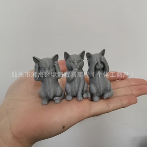 跨境新品勿听勿看勿言的猫万圣节猫咪装饰品摆件