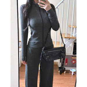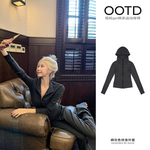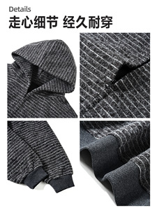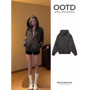 黑色条纹毛衣外套女2025新款秋季穿搭连帽宽松韩里韩气chic设计感
