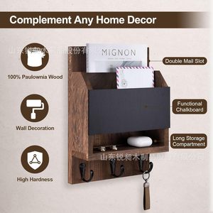 实木墙上置物架木质壁挂式邮件信封收纳架玄关钥匙扣带黑板壁挂架