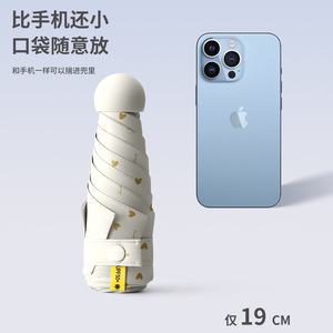 现货批发迷你五折雨伞黑胶防紫外线遮阳伞晴雨伞折叠伞女生太阳伞