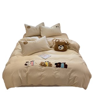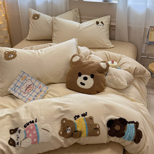 可爱床上刺绣四件套卡通宿舍纯棉被套床笠三件套床上用品批发