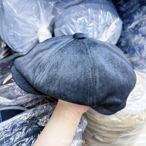 批发韩国2025年秋冬新款复古纯色皮质贝雷帽女大头围显脸小画家帽