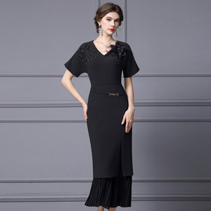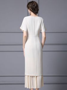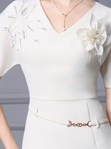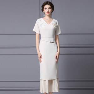 智丽重要场合漂亮连衣裙上流社会高档优雅气质精致钉钻白色长裙子