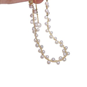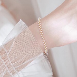 S925纯银设计款手工编织满天星天然淡水珍珠手链闪O链可调节批发