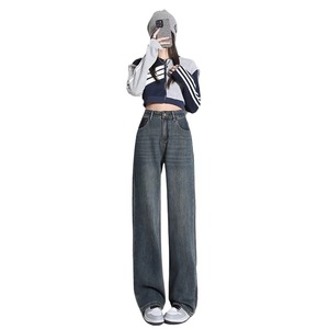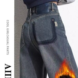 加绒窄版阔腿牛仔裤女2025秋冬高腰梨型身材显瘦水泥灰复古直筒裤