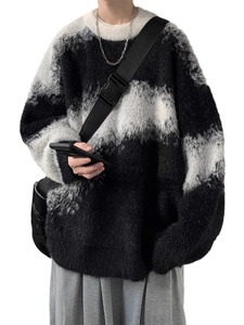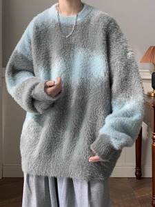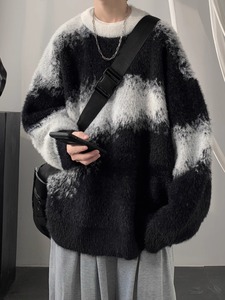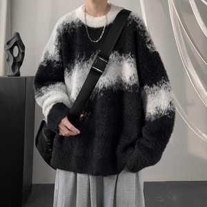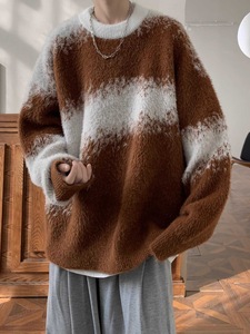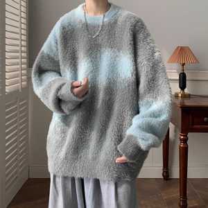 美式复古撞色海马绒oversize毛衣男士秋冬季百搭宽松针织套头潮牌