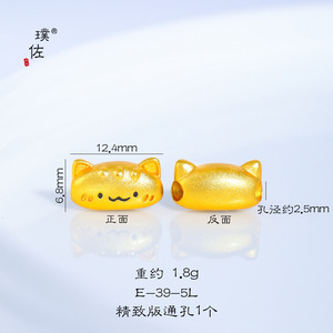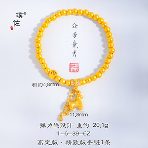 璞佐金店同款沙金法棍小猫咪醒狮马上有钱圆珠手链可爱转运珠手串