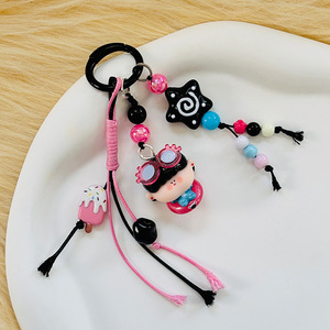 泡泡玛特萌粒钥匙扣小清新小众潮玩手串配饰配饰米珠流苏水晶散珠