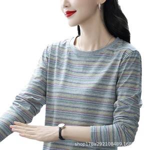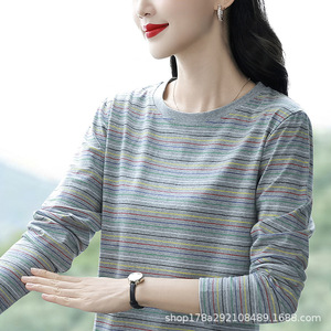 长袖t恤女士纯棉中老年女装春装新款洋气大码宽松内搭外穿打底衫