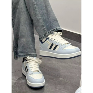 蓝白色拼接两条杠面包鞋女ins潮百搭小众设计滑板鞋运动休闲鞋子