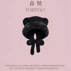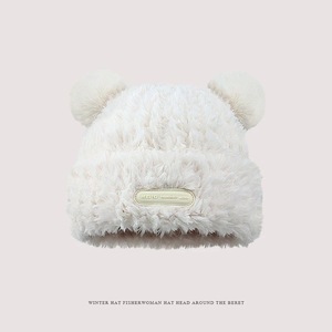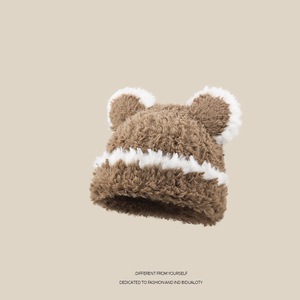 冬季小熊2025新毛绒护耳针织帽女韩版百搭显脸小毛线帽子2025新款