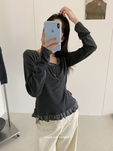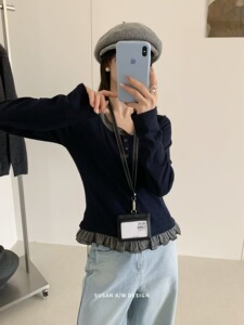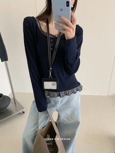 苏珊 2025秋季假两件长袖撞色长袖打底衫圆领小众针织衫上衣27052